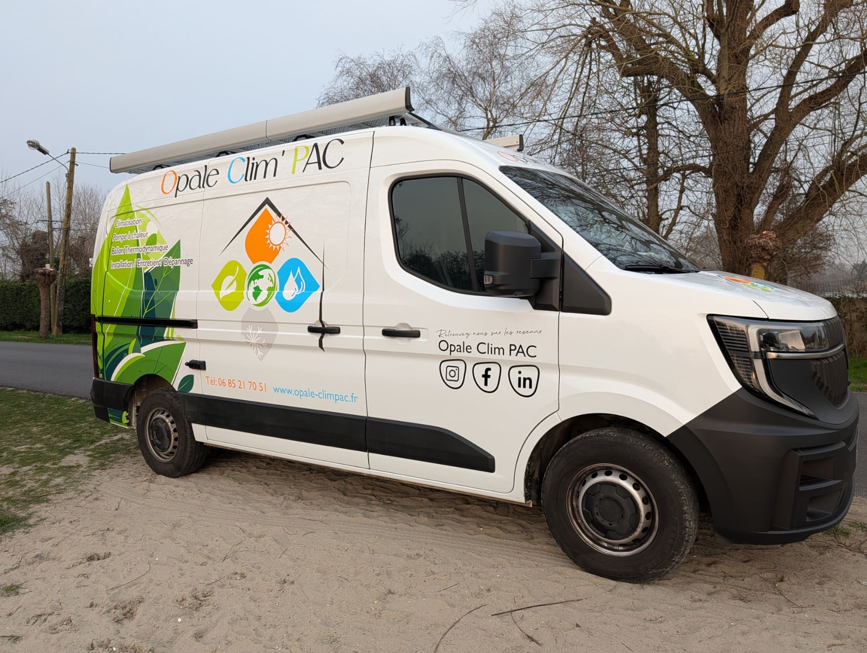 Avec cette nouvelle camionnette floquée Opale Clim Pac, nous renforçons notre présence sur l’ensemble de notre zone d’intervention. Nos techniciens se déplacent quotidiennement dans le Pas-de-Calais, notamment à Saint-Omer, Calais, Boulogne-sur-Mer et sur toute la Côte d’Opale.